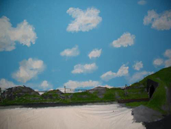De omschrijving van deze kleur is; Flexa AMB Hemels. De wolken heb ik met de hand geschilderd met witte Acrylic verf. Om de wat grijze tint te krijgen heb ik wat zwart toegevoegd