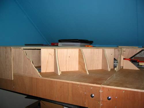 Na tevreden te zijn over de "spanten" worden de platen er op gelegd.