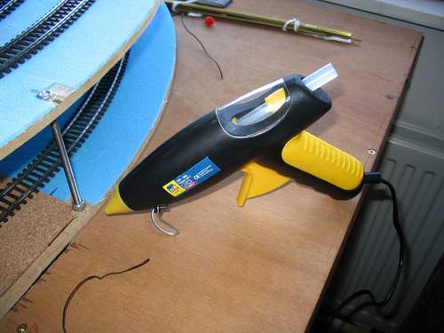 De rails werden vast gelijmd met het wel bekende lijmpistool.