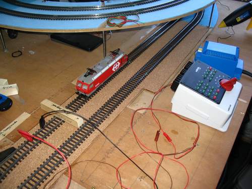 Hier even een testopstelling gemaakt op het spiraal op het binnenspoor te testen (voor de zoveelste keer) op een goede werking.