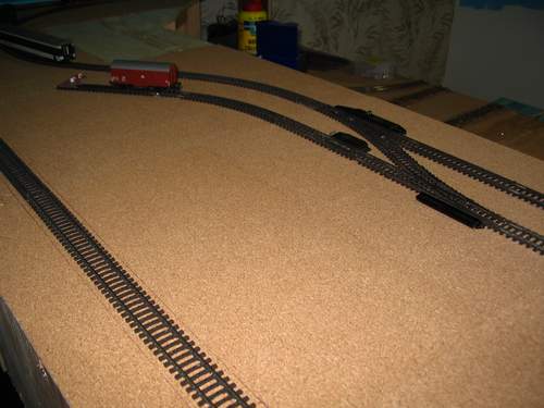Hier even de “ruw” gelegde sporen, 2 voor de locloods en 1 opstelspoortje.