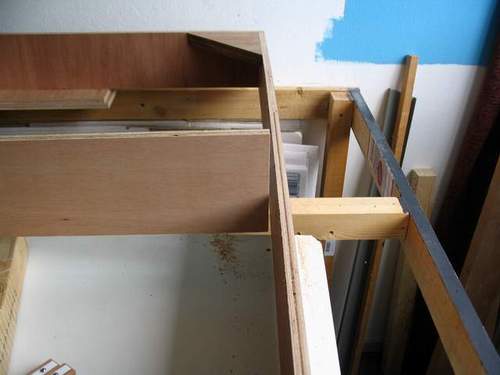 Nadat de opstaande kanten zijn vast geschroefd wordt er vervolgens een hoekstuk in geplaatst om het geheel haaks te houden en voor stabiliteit.