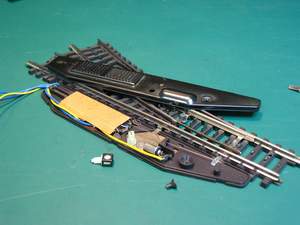 Nu heeft u zicht op de binnenzijde van de wissel waar de magneetspoelen zitten.