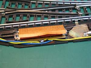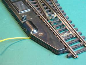 Op de meeste van die wissels zitten wissel-latntaarns welke via de gele (0) draad en de massa vanaf de spoorstaven worden gevoed.