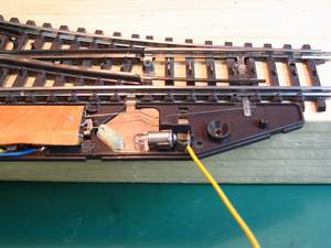 Doe dit niet te dicht bij het draaipunt van de lantaarn en zorg er voor dat de plaat (lees soldeerbout) niet te heet wordt ander smelt het draaipunt van de wissel en is al uw werk voor niets geweest.