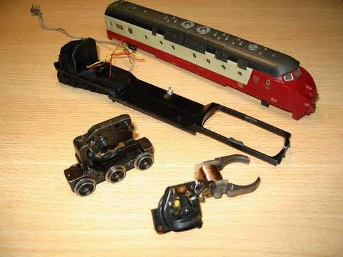 De motorwagen gedemonteerd en bekeken welk type decoder en motorset ik nodig zou hebben voor de ombouw.