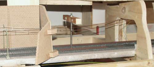 Zo gauw een loc met pantograaf een tunnel, schaduwstation of een klimspiraal in of uit rijd wordt de pantograaf geleid door een "vanger".