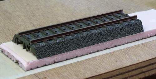 U kunt stroken van dit materiaal onder het rail -traject plaatsen en deze vervolgens met gebruik van houtlijm of dubbelzijdig Tape vast plakken/lijmen, die keuze is aan u. Zelf kies ik voor dubbelzijdig Tape.